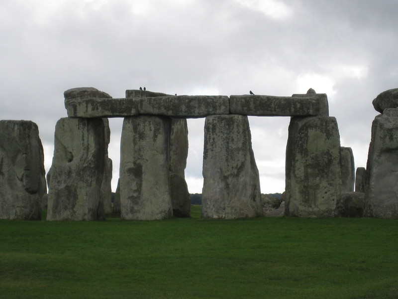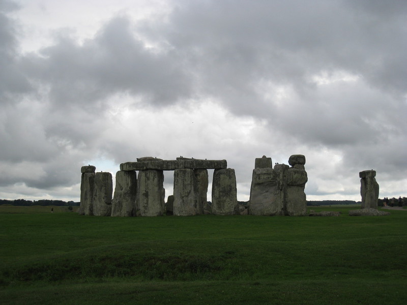 Stonehenge is a group of stones standing on the Salisbury Plain. ‘Henge’... simply means hang! The word 'hanger' is still used for a large building with no internal supports. The roof, supported by the Sarsen Circle of stones, is pre-eminent among megalithic monuments in the British Isles. This great prehistoric structure is enclosed by a circular trench. The outermost ring is a circle of sandstones about 13.5 ft high connected by lintels; the second group is a circle of bluestone menhirs; the third is horseshoe shaped; and the innermost grouping is an ovoid circle including the 'Altar' Stone. Stonehenge was build around 3500 BC by semi-nomadic peoples who populated the Salisbury Plain. The first stone to be placed was the Heel Stone. 200 years later 80 blocks of Bluestone were brought from a quarry almost 200 miles away. These blocks were likely transported by rafts along the Welsh coast and up local rivers, and finally dragged overland to the site. At some point earlier construction was dismantled and work began on the final phase of the site. The Bluestones were moved within the circle and the gigantic Sarsen stones that give Stonehenge its distinctive look were installed. Some of these massive stones weigh as much as 26 tons! The circle is aligned with the midsummer sunrise, the midwinter sunset, and the most southerly rising and northerly setting of the moon. For more info visit the Stonehenge English Heritage site.